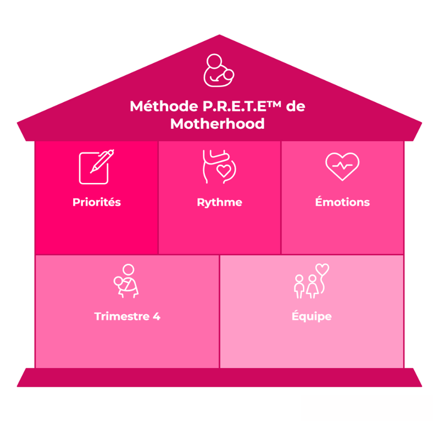 Les 5 piliers de la méthode de Motherhood t’assurent une préparation complète, qui colle à ce que tu traverses : du test positif aux premiers mois avec ton bébé. Pas pour te transformer en “experte en maternité”,